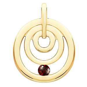 Channel Set Circle 18K Yellow Gold Pendant with Deep Red Diamond