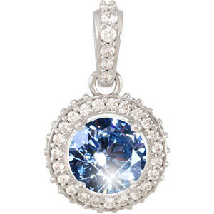 Round Cut Center 18K White Gold Pendant with Fancy Blue Diamond