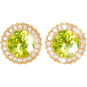 4-prong Round Cut 18K Yellow Gold Earrings with Fancy Greenish-Yellow Diamonds