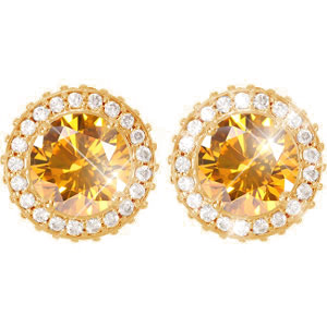 4-prong Round Cut 18K Yellow Gold Earrings with Fancy Orange-Yellow Diamonds
