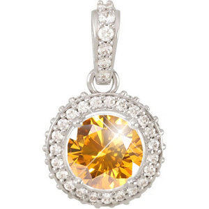 Round Cut Center 18K White Gold Pendant with Fancy Orange-Yellow Diamond