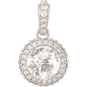 Round Cut Center 18K White Gold Pendant with White Diamond