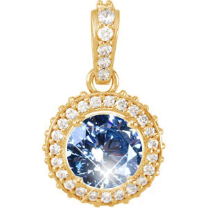 Round Cut Center 18K Yellow Gold Pendant with Fancy Blue Diamond