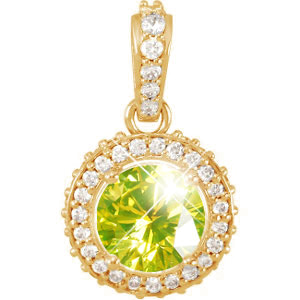 Round Cut Center 18K Yellow Gold Pendant with Fancy Greenish-Yellow Diamond