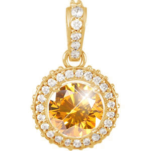 Round Cut Center 18K Yellow Gold Pendant with Fancy Orange-Yellow Diamond