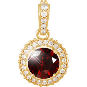 Round Cut Center 18K Yellow Gold Pendant with Fancy Deep Red Diamond