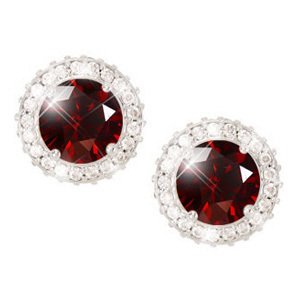 4-prong Round Cut 18K White Gold Earrings with Fancy Deep Red Diamonds