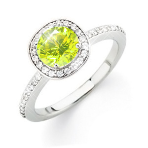 7-prong Cluster Round Cut Center 18K White Gold Pendant with Fancy Greenish-Yellow Diamond
