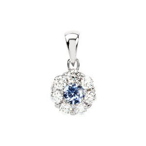 7-prong Cluster Round Cut Center 18K White Gold Pendant with Fancy Blue Diamond