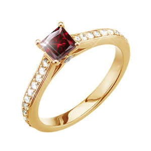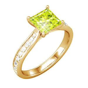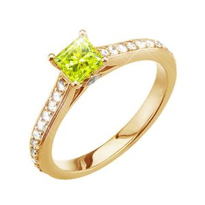 Stunning Princess Cut Engagement 18K Yellow Gold Ring with Greenish-Yellow Diamond