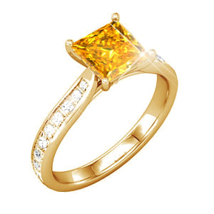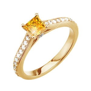 Modern Princess Cut 18K Yellow Gold Engagement Ring Fancy Orange-Yellow Diamond