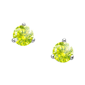 Martini-Style 18K White Gold Stud Earrings with Greenish-Yellow Diamonds