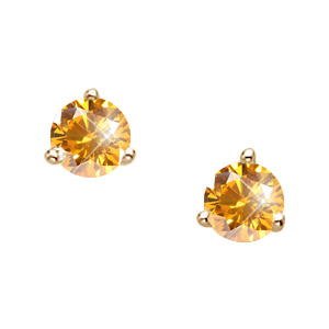 Martini-Style 18K Yellow Gold Stud Earrings with Orange-Yellow Diamonds