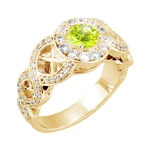 Antique Halo Engagement 18K Yellow Gold Ring with Greenish-Yellow Diamond