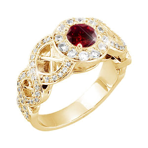 Antique Halo Engagement 18K Yellow Gold Ring with Deep Red Diamond