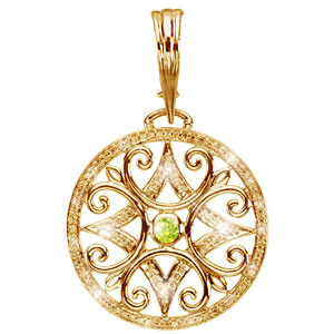 Antique Round Cut Center 18K Yellow Gold Pendant with Fancy Greenish-Yellow Diamond