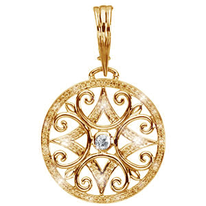 Antique Round Cut Center 18K Yellow Gold Pendant with Fancy Orange-Yellow Diamond