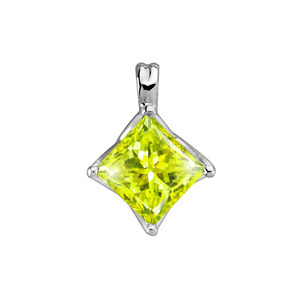 Princess Cut Four-Prong 18K White Gold Pendant with Greenish-Yellow Diamond