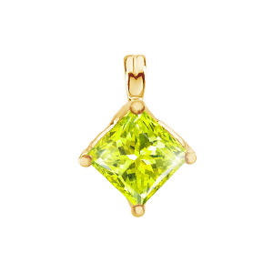 Princess Cut Four-Prong 18K Yellow Gold Pendant with Greenish-Yellow Diamond