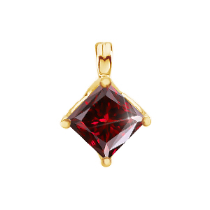 Princess Cut Four-Prong 18K Yellow Gold Pendant with Deep Red Diamond