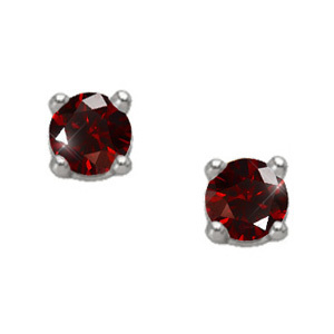 Brilliant Cut 18K White Gold Stud Earrings with Deep Red Diamonds