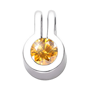 Stylish Bezel Set Round Cut Solitaire 18K White Gold Pendant with Orange-Yellow Diamond